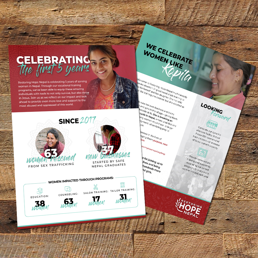 Inspire confidence and celebrate achievements. Impact reporting is an essential part of displaying your organization’s success. The report shows the outcomes of your work and gives vision as to how your donors’ gifts have made a difference—building trust and credibility with supporters and beneficiaries. We’ll create a visually appealing, one-page (2-sided) executive impact summary with key numbers, pictures, and graphs to represent one year of your organization’s impact. It can be used as a supplemental piece to your annual report and sent digitally to a broader audience. It can also be included in major donor folders and corporate proposals.